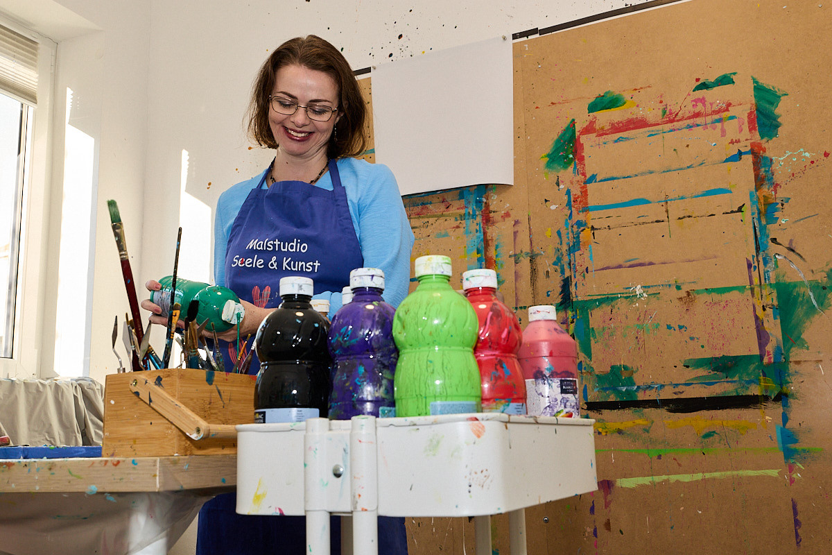 Im Vordergrund steht die Freiheit sich selbst auszudrücken ohne bewertet zu werden. Es geht nicht um das Ergebnis, sondern um den Malprozess, der eine entspannende und heilsame Wirkung haben kann.